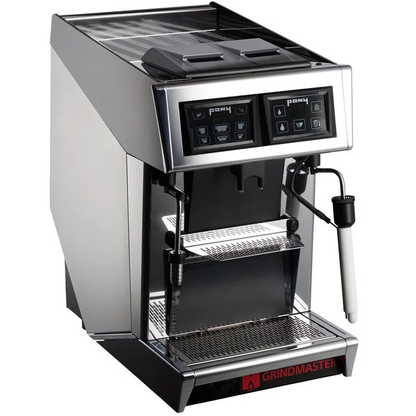 Get the benefit quality espresso with the convenience of a super automatic machine by choosing this Grindmaster 1011-007 Pony series two pod espresso machine. If you need a professional espresso machine without the complications of a traditional style unit, this pod machine is a great choice. It uses espresso pods and requires very little training for staff to be able to operate it effectively.