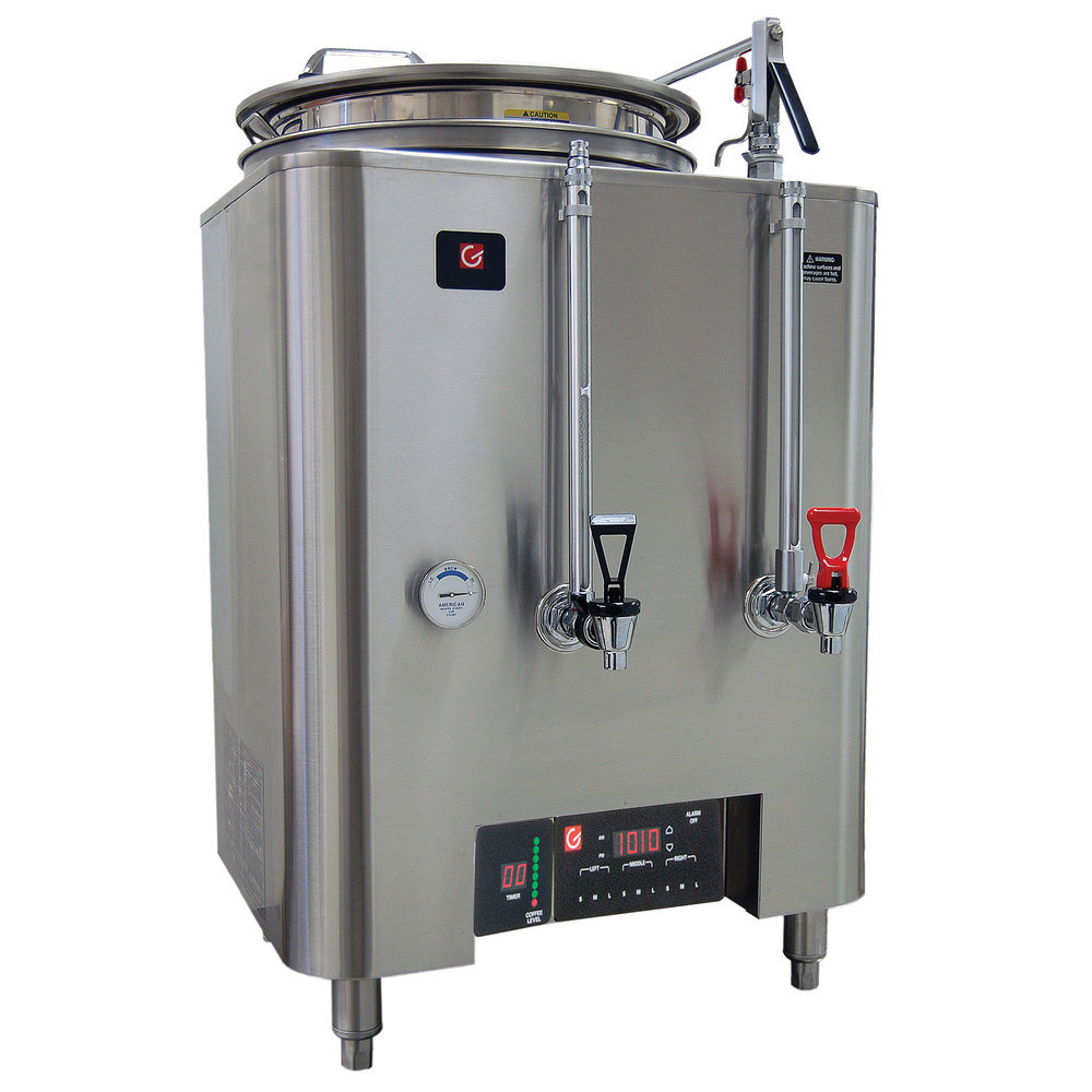 Keep up with high demands during peak times in your restaurant, convenience store, or coffee shop with the Grindmaster PB-8103E PrecisionBrew Barista Series twin 3 gallon automatic coffee urn! Designed to brew and warm up to 33 gallons of coffee per hour, this urn boasts an array of features that allow the operator to completely control the brewing process.