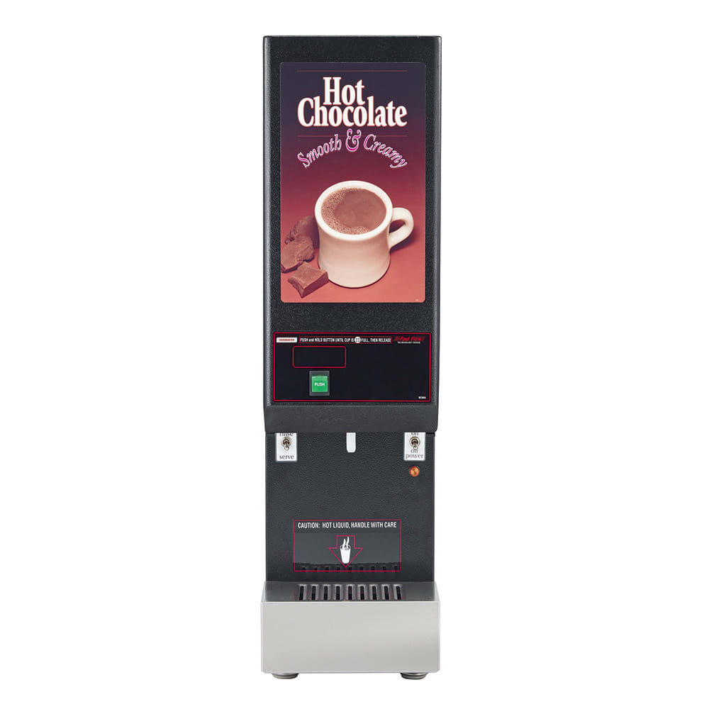 GRINDMASTER GB Powdered Hot Chocolate Dispenser, electric, low volume, (1) 8 lbs capacity hopper, power whip, vacuum steam removal system, 1.4 gallon capacity water tank, non-lit door with right hinge, black exterior, cULus, NSF