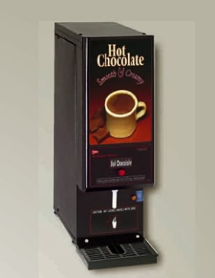 GRINDMASTER GB Powdered Hot Chocolate Dispenser, electric, medium volume, (2) 4 lbs capacity hopper, power whip, vacuum steam removal system, 1.4 gallon capacity water tank, non-lit door with right hinge, black exterior, cULus, NSF