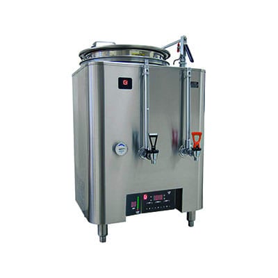 With one 3-gallon tank, the Grindmaster PB-8113E coffee urn includes ample brew baskets, holding more than 2 pounds of coffee and enabling three specific batch sizes per liner. Each insulated liner is electropolished and includes liquid level sensors and a two-digit countdown to remind users when to brew again. Coffee is held between 180 and 185 degrees Fahrenheit and automatic air agitation gives each cup the same profile.