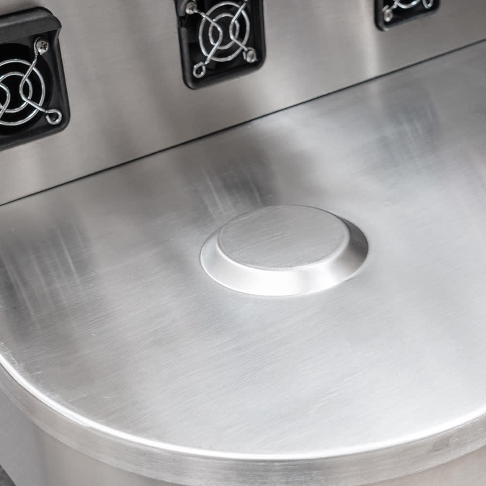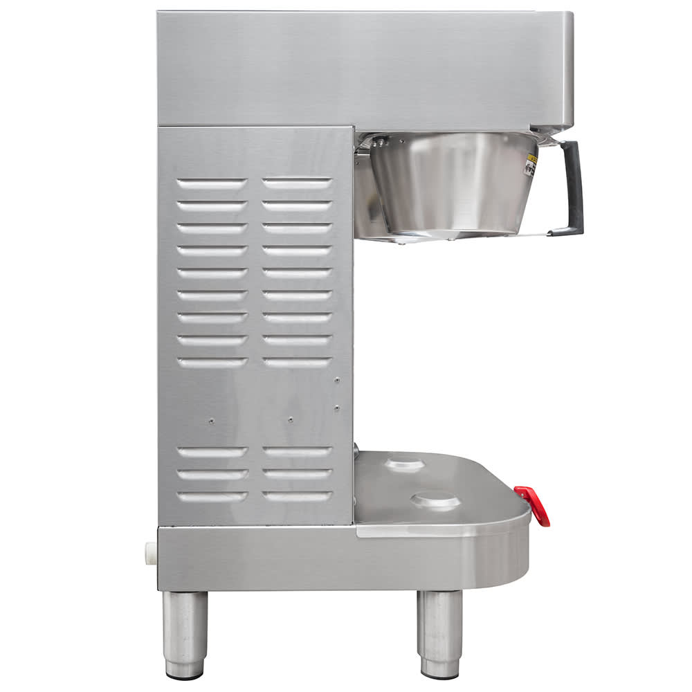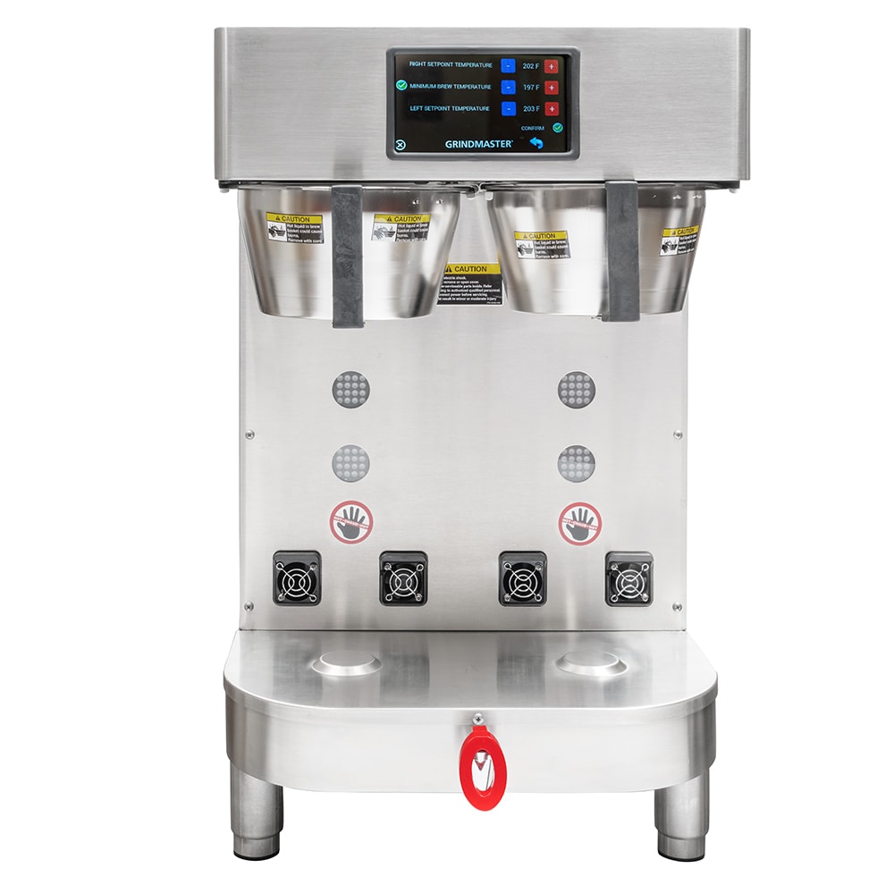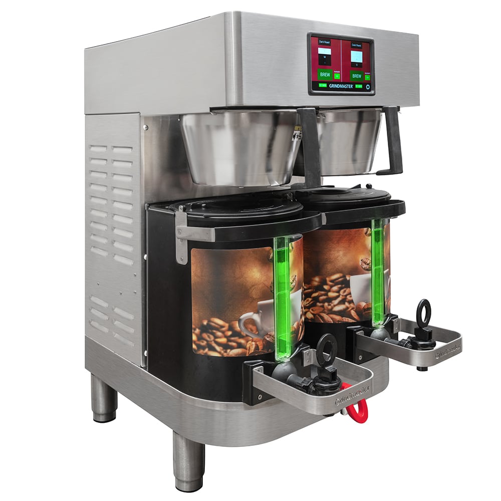The Grindmaster PBC-2A Air-Heated Shuttle coffee brewer is a pouring station, brewing and dispensing coffee into insulated shuttle pots to be taken elsewhere for remote coffee holding and serving. Its touchscreen controls and digital interface are straightforward and streamlined, so users can set their brew quickly and get started. Using Java-tate technology, the brewer continues to blend coffee by stirring it for consistent flavor.