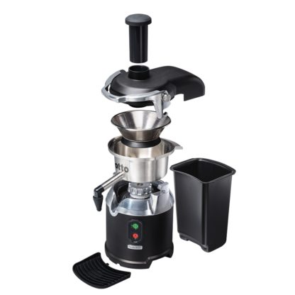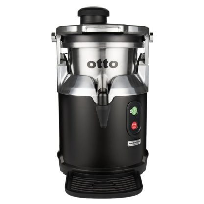 Otto Centrifugal Juice Extractor, electric, countertop, manual feed, 3″ diameter feed chute, brushless induction motor with dual cooling fans, 304 stainless steel bowl, polished stainless steel strainer basket, aluminum base, includes Tritan food pusher, 12 qt. pulp bin & cleaning brush, 120v/60/1-ph, 8.5 amps, NSF, cETLus