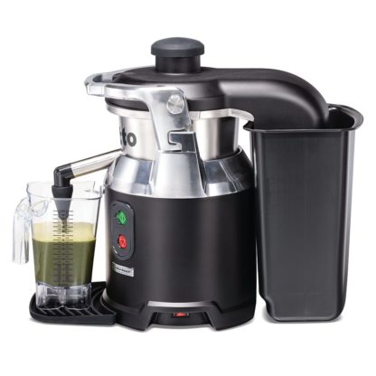 Fruits and vegetables can be fed into the Hamilton Beach HJE960 centrifugal juice extractor through a 3-inch-diameter chute, and a Tritan food pusher helps transport food items into the container. Made of 304 series stainless steel, the bowl is durable and will withstand repeated use with acidic fruits. The 12-quart pulp bin holds unwanted pulp from oranges and mangos, while an included brush streamlines cleaning of this bin.