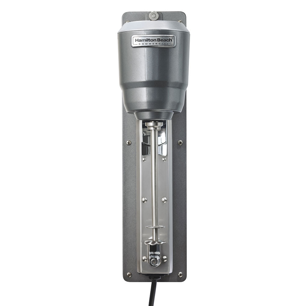 The Hamilton Beach HMD300 wall-mounted drink mixer has a die-cast stainless steel housing with a removable cup guide that is dishwasher safe. Its speed switch enables a variety of products to be prepared, and it comes with one stainless steel cup and all mounting hardware. This drink mixer has a two-way motor activation, so operators can start and stop the motor by inserting a cup into the guide or by pressing the pulse button.