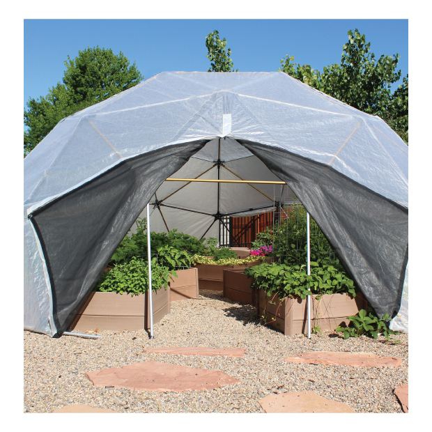 Aircraft aluminum anodized poles Designed for easy set up/take down and increased durability Fitted door Two people can setup the entire greenhouse in 1 hour, yet it becomes the most durable and weather-resistant greenhouse in the industry.