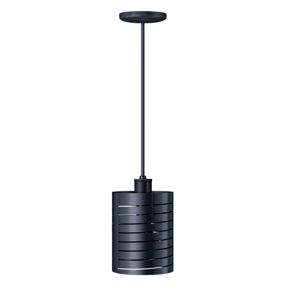 Decorative Heat Lamp, Standard, (1) bulb type (not included), 8-1/2″H x 6-1/2″ Dia. 31″ to 69.5″ overall length, cylinder shade, 250 watt max, retractable cord mount, lower switch, gloss finish, bold black, CE, cULus, UL EPH Classified, ANSI/NSF 4, Made in USA