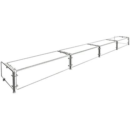 Flav-R-Shield EP11 Food Shield, full service, 132″W x 18″D x 18″H, mounted, 1/4″ thick heat tempered glass construction throughout with 3/4″ radius corners and polished edges, glass top shelf, front and side panels, 1″ OD brushed 304 stainless steel posts, NSF component, Made in the USA