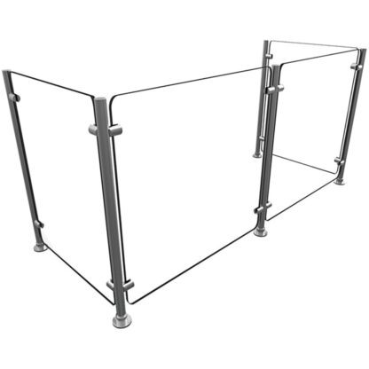 Flav-R-Shield EP5 Food Shield, full service, 48″W x 18″D x 25″H, heat tempered glass construction throughout with 3/4″ radius corners and polished edges, 1/4″ thick glass front and side panels, 1″ OD brushed 304 stainless steel posts, NSF component, Made in the USA