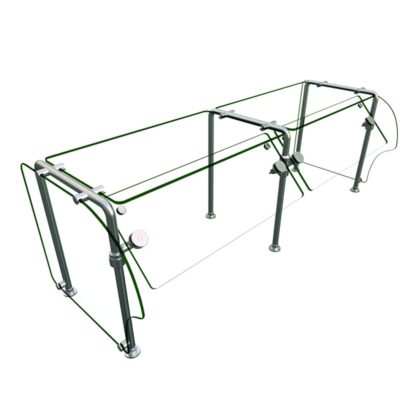 Flav-R-Shield ES90 Food Shield, self-service, 60″W x 24″D x 22.63″H, heat tempered glass construction throughout with 3/4″ radius corners and polished edges, 3/8″ thick glass top shelf, adjustable front panel and side panels, 1″ OD brushed 304 stainless steel posts, NSF component, Made in the USA