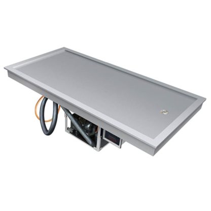 Drop-In Slim Frost Top, 80-13/16″L, accommodates (3) full size sheet pans, lighted on/off rocker switch, electronic adjustable temperature control can be mounted to either side of condensing unit or remotely up to 4′ from unit, 1″ NPT drain, self-contained refrigeration, cULus, Made in USA, 120v/60/1ph