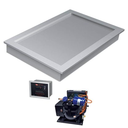 Drop-In Frost Top, 21-1/16″L, accommodates (1) full size sheet pan, auto defrost, electronic adjustable temperature control can be mounted to either side of condensing unit or remotely up to 4′ from unit, remote refrigeration and control panel, cULus, Made in USA, 120v/60/1ph