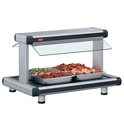Buffet Warmer, counter model, pass thru design, hardcoat aluminum heated base, double acrylic sneeze guards, incandescent lighting, designer panels & corner caps, 4″ legs, 2660 watts