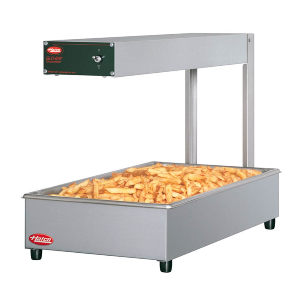 The Hatco GRFF-120-T-QS portable food warmer keeps food at a safe temperature until it reaches the customers. This model uses a stand to keep food pans off the work area. Customers or staff can easily access food from three sides. The metal-sheathed heating elements are guaranteed to not burn out or break for two years. Food quality is maintained by using pre-focused heat patterns that ensure precise temperature controls. A 6-foot cord with a plug is pre-wired at the factory for easy installation. Whether you use it to hold french fries, pastries, or whole plates of food, the Hatco GRFF-120-T-QS portable food warmer will hold your food at safe serving temperatures.