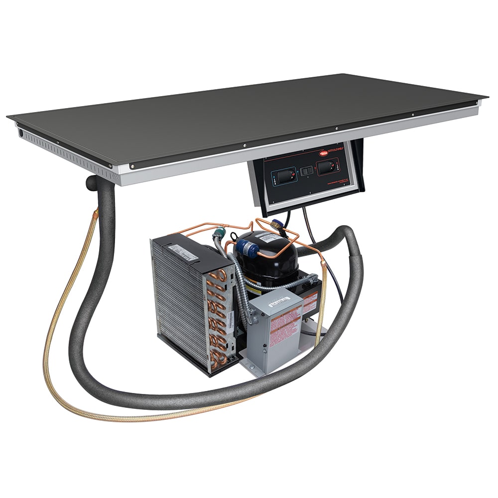 To accommodate a variety of holding needs, the Hatco HCSBF-24-S hot/cold shelf is a combination heating and cooling unit that can switch between modes in 30 minutes. It features a thermal break that reduces condensation and temperature transfer to nearby surfaces. While this unit’s condenser is unattached, it’s equipped with a long, flexible refrigerant line to provide access to the condensing unit for service.