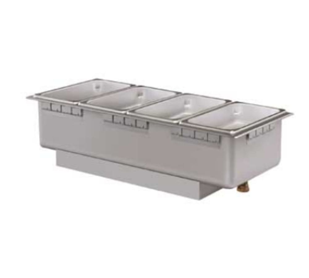 Drop-In Heated Well, with drain, rectangular, (4) 1/3 size pan cap., top mounted, remote thermostat with separate power switch, stainless steel construction (low wattage), cUL, UL, UL EPH Classified, ANSI/NSF 4, 120v/60/1ph