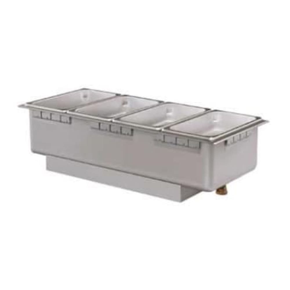 (Fabricator component only) Drop-In Heated Well, with drain, rectangular, non-insulated, top mounted, holds (4) 1/3 size pans, thermostatic controls with lit rocker switch & leads, stainless steel construction (standard watt)