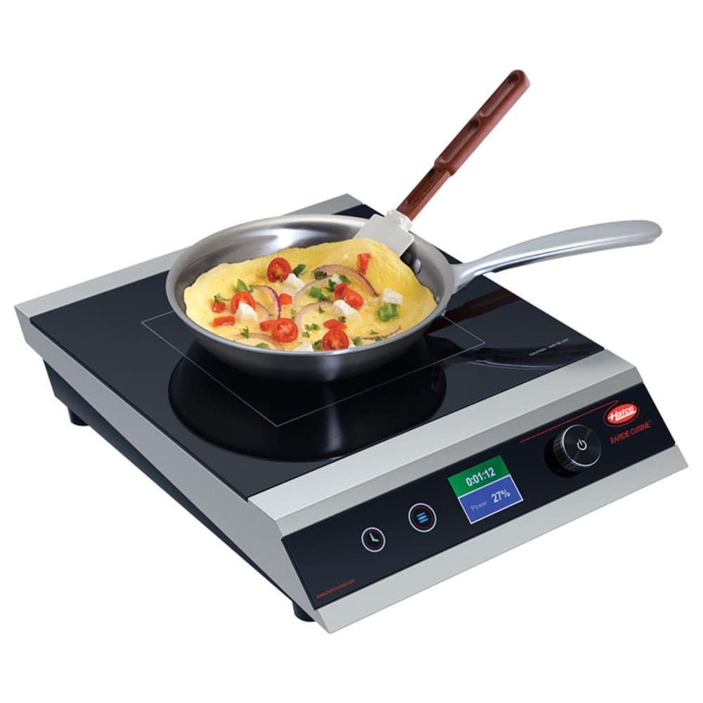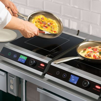 Users can update the Hatco IRNGPC118SB515 Rapide Cuisine countertop induction range through its USB port or program specific recipe settings on its control panel. Its automatic turn-off feature shuts the unit down before it can overheat. When a pan meets the burner, the unit’s Pan Sense Technology automatically switches the unit on. A control knob and display screen enable users to adjust the power and time.