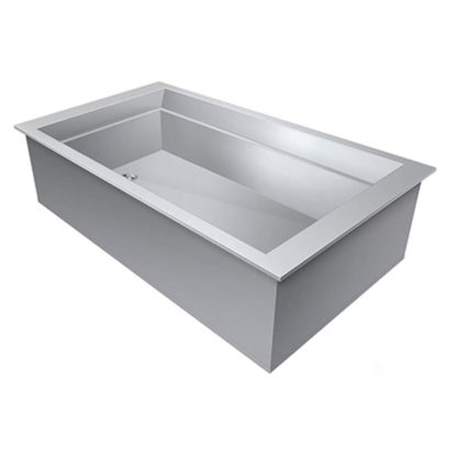 Drop-In Cold Food Unit, iced cold pan, 45″L x 27″D, (3) pan size (pans not included), insulated, bezel design, 1″ brass drain with screen, stainless steel construction