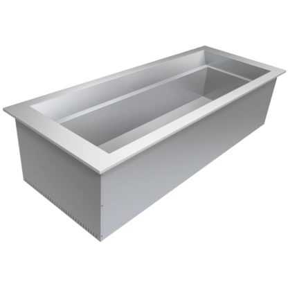 Drop-In Slim Cold Food Unit, iced cold pan, 48-1/8″L x 19″D, (2) pan size (pans not included), insulated, bezel design, 1″ brass drain with screen, stainless steel construction, Made in USA