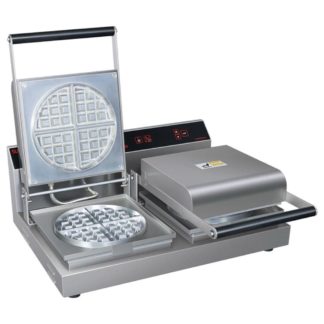 Doubling the volume of fresh, hot waffles, the Hatco SNACK-2-QS classic Belgian waffle maker has dual presses, each of which are fitted with classic round waffle plates. For flexibility of use, the waffle maker also comes with a cleaning brush and an additional set of plates in another style. Made of aluminum, the plates are lightweight and heat evenly. The plates can be easily cleaned with warm soapy water after being removed from the machines with its one-touch plate release and latch opener.
