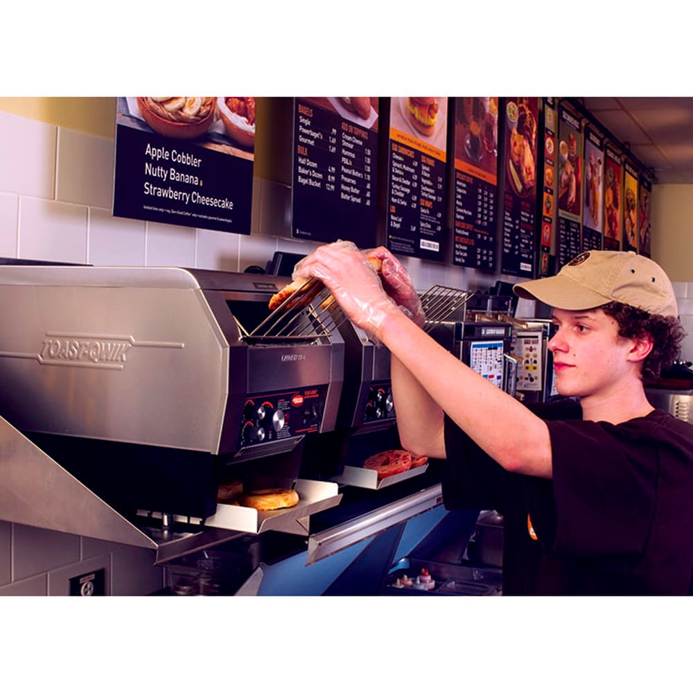 Toast-Qwik Conveyor Toaster, horizontal conveyor, countertop design, all bread types toaster, approximately 14 slice capacity/min, 3″ opening height, electronic controls, colorguard sensing system, cULus, UL EPH Classified, ANSI/NSF 4, Made in USA, 208v/60/1ph