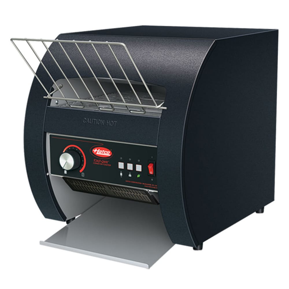 To facilitate cleanup, the crumb tray on the Hatco TQ3-10 Toast-Qwik conveyor toaster is removable, along with its air intake filter screen. Its 2-inch opening can accommodate sandwich bread, buns, bagels, and Texas toast, and for improved menu flexibility, this unit can be set to toast one or both sides of the bread.