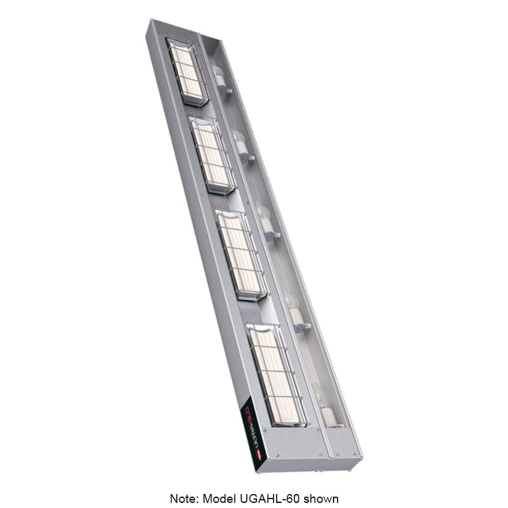 Ultra-Glo Infrared Foodwarmer, high wattage, with lights, single ceramic heat strip with aluminum housing, 66″ wide, with remote or attached control box, adjustable angle brackets, NSF, cULus, Made in USA,