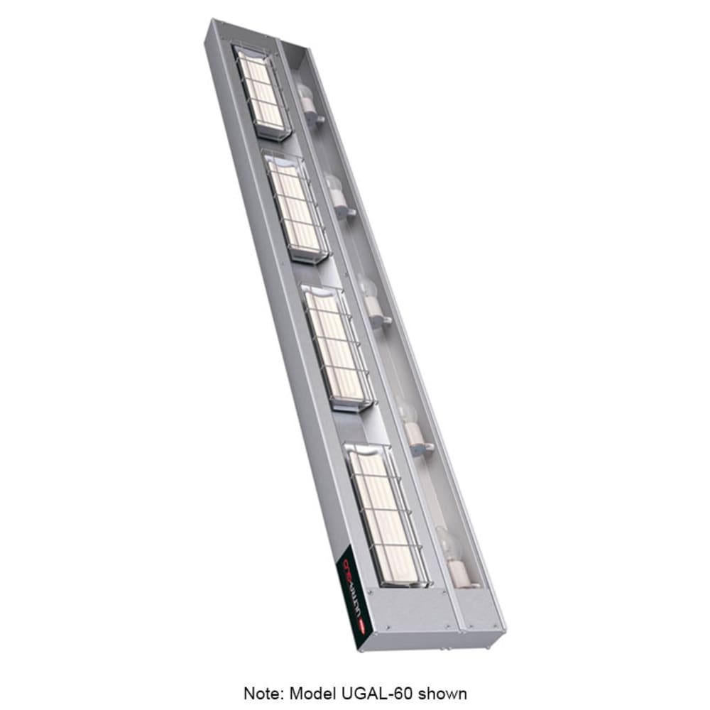 Ultra-Glo Infrared Foodwarmer, standard wattage, with lights, single ceramic tile with aluminum housing, 36″ wide, with remote or attached control box, adjustable angle brackets, NSF, cULus, Made in USA