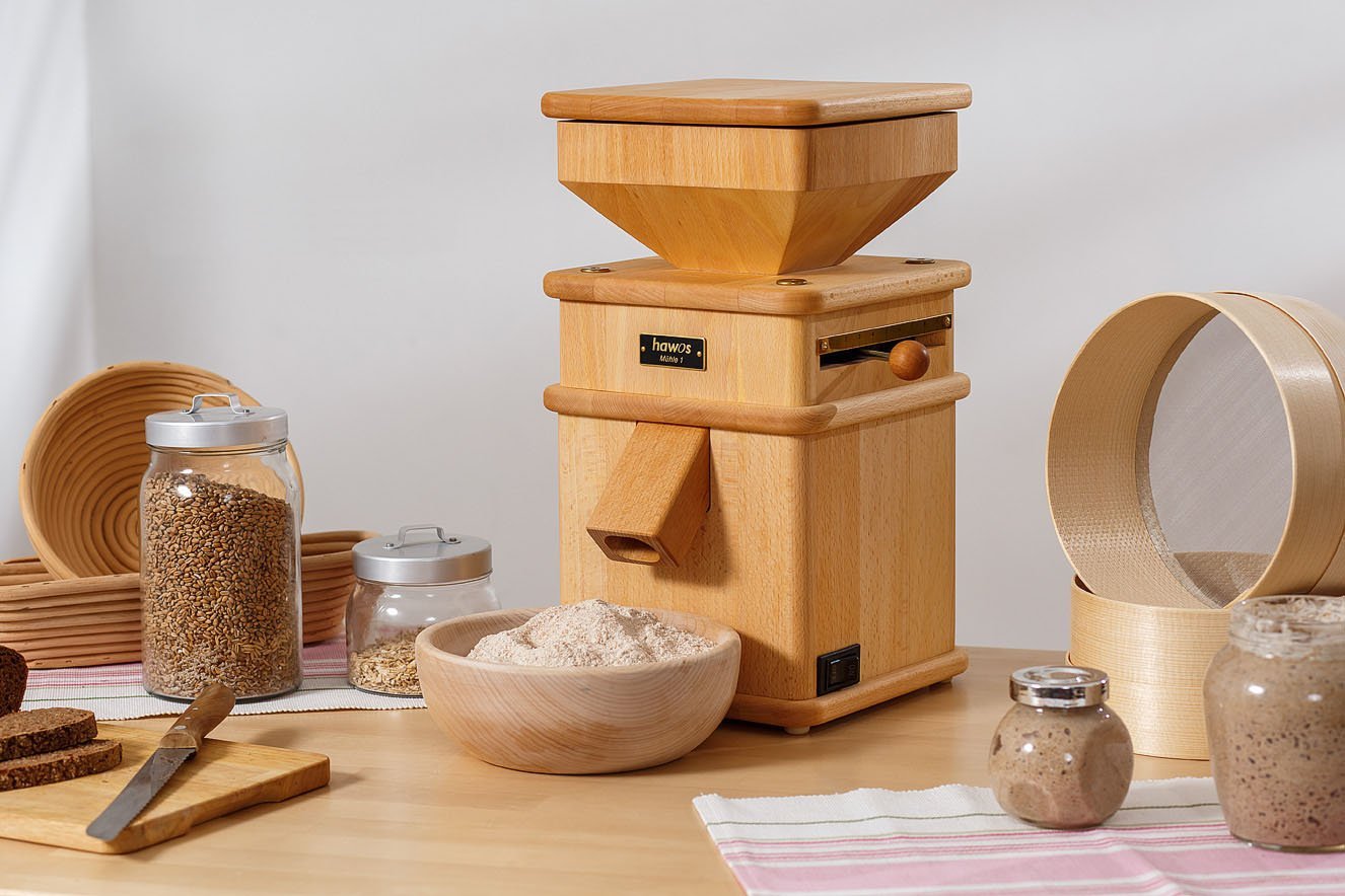 Tribest Grain Mills are hand-crafted with precision German engineering. All of the Tribest mills feature stone mills to create an ultra fine grind without the heat associated with stainless steel mills. The grindstones in Tribest grain mills are made of natural corundum stone that has been mixed with a special ceramic to create an ultra-hard stone that resists chipping and wearing. Plus, they are encased in beautiful beechwood that are an elegant addition to your kitchen appliances.
