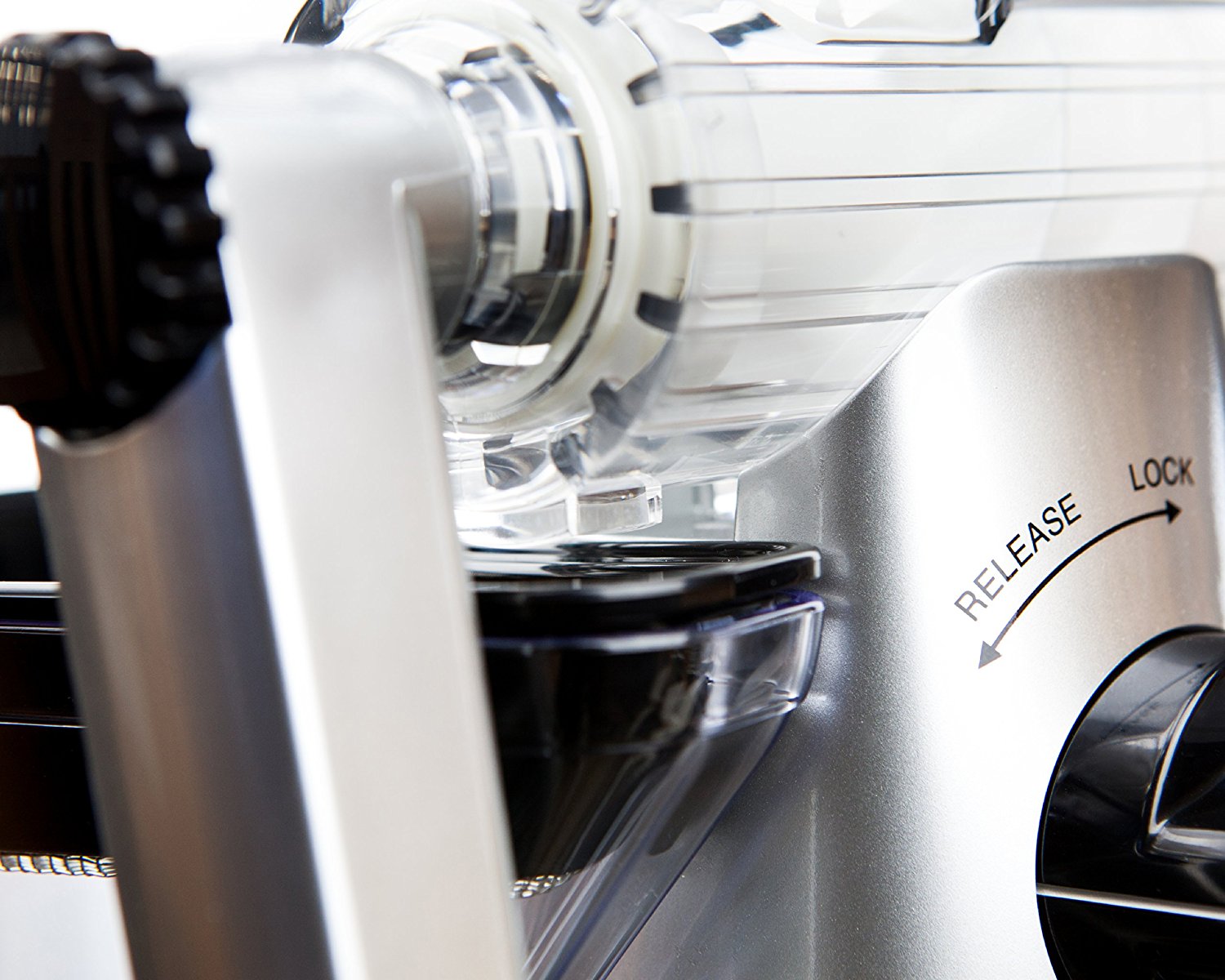3. It pays to make sure all the parts are properly tightened before you start. The green part at the end and the small, beige end cap need to be tight to make sure that your precious juice doesn’t leak out before it flows to the back and drips into the tray.