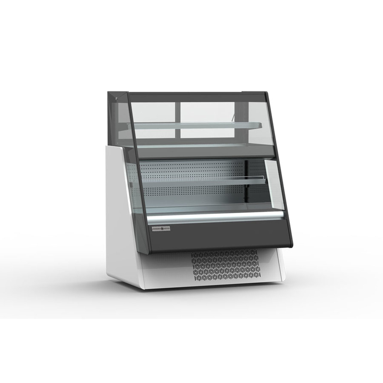 The KGL-OU-36-S is a low profile vertical refrigerated merchandiser made by Hydra-Kool. This open-air merchandiser is built with tempered glass and houses height adjustable shelves.