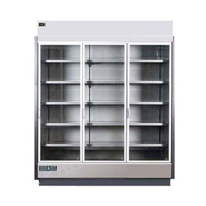 The KGV-MR-3-S is a high volume refrigerated glass door merchandiser made by Hydra-Kool with 56.37 cubic feet of space. This refrigerated merchandiser is built with three glass front doors, and houses five height adjustable shelves. Additionally, the KGV-MR-3-S has three solid doors in the back to allow for rear loading of its shelves.