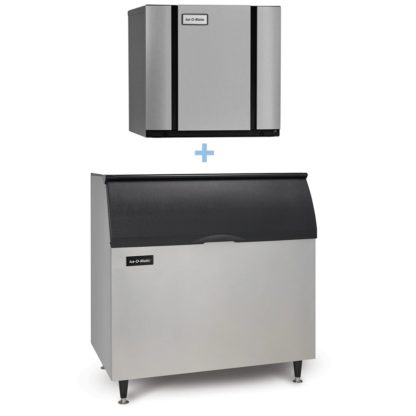 Elevation Series Modular Cube Ice Maker w/ Bin, air-cooled, self-contained condenser, dual exhaust top/side air discharge, 30″ W, approximately 896 lb production/24 hours at 70°/50° (711 lb at 90°/70°), half-size cubes, PURE ICE built-in antimicrobial protection, LED status display, one touch sanitize/descaling controls, dishwasher safe food zone components, 208-230v/60/1-ph, 11.8 amps, cULus, NSF, CE; Ice Bin w/ Filler Panels: 854 lb storage capacity, 48″W x 31″D x 50″H, top-hinged, slope front door, for top-mounted ice maker, polyethylene interior, durable stainless finish exterior, 6″ legs, NSF