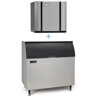 The Ice-O-Matic CIM1446HW/B110-PS ice maker and bin can produce as much as 1,560 pounds of ice in a day, which is great for use in fast casual and bar establishments to produce ice for drinks. It makes half-cube ice, a popular beverage material for its swift cooling capability, and the maker head has side and top exhaust ports to split up heat release and reduce exhaust obstruction.