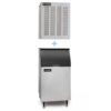 Pearl Ice Maker, soft, chewable ice crystals, air-cooled, self-contained condenser, approximately 740 lb/336 kg production/24 hours, durable stainless finish, cULus, NSF, CE; Ice Bin w/ Bin Top: 351 lb storage capacity, 22″W, 31″D x 50″H, top-hinged, slope front door, for top-mounted ice maker, polyethylene interior, durable aluminum exterior, 6″ legs, NSF