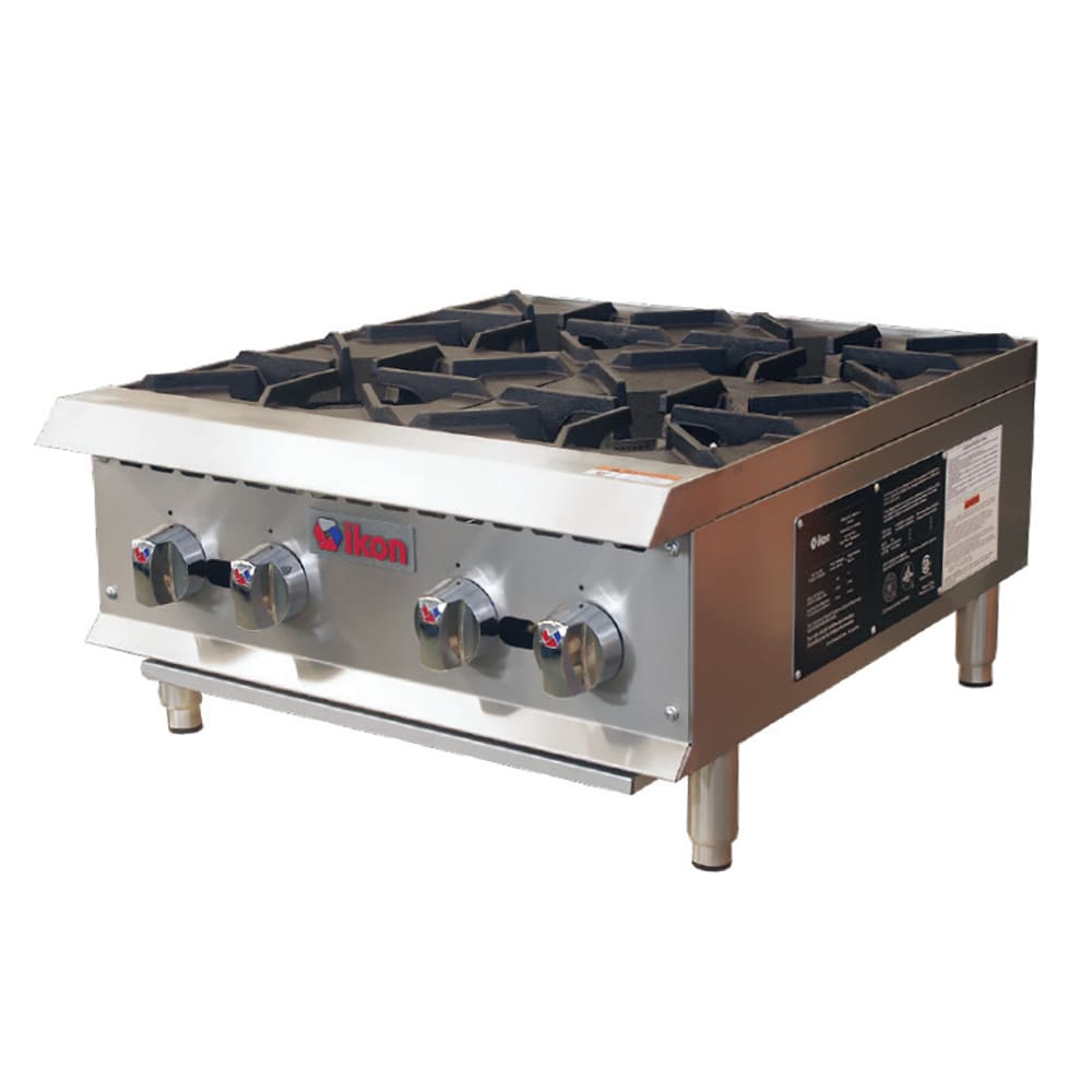 Hotplate, gas, 24″ W x 34.1″ D, (4) 25,000 BTU octagonal cast iron burners, cast iron grate, standing pilot light per burner, manual controls, serviceable from front, stainless steel cabinet, adjustable stainless steel legs, 100,000 BTU total, CSA-Sanitation, CSA Flame, CSA Star