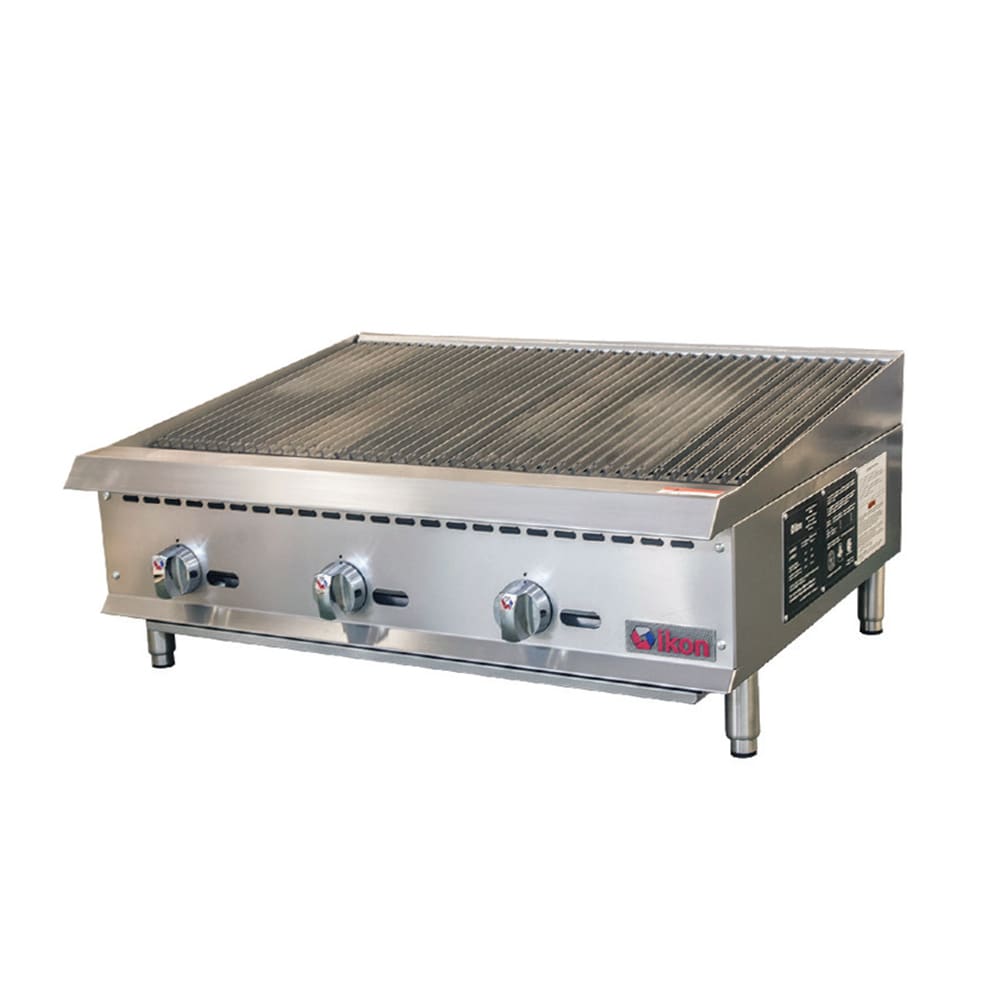Radiant Broiler, gas, 36″ W x 34.4″ D, (3) 35,000 BTU ‘U’ shape burners, 10 gauge cast iron radiants, rear flue, adjustable manual controls, 3-position cast iron grates, front lit pilot light, double wall insulated sides, back & side splash guards, removable full width crumb tray, rear gas regulator, stainless steel cabinet, adjustable stainless steel legs, non-skid feet, 105,000 BTU total, CSA-Sanitation, CSA Star, CSA Flame
