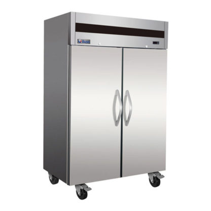 Ikon IT56F One Section Bottom Mount Reach-in Refrigerator comes with an Electronic Thermostat and a digital LED temperature display for accurate control and easy reading, reach-in, two-section, 49 cu. ft. capacity, 53-9/10″W x 32-7/10″D x 82-3/10″H, (2) locking solid stainless steel doors, (6) adjustable shelves, accommodates full-size sheet pans, LED interior lighting, electronic thermostat, 0° to -10°F temperature range, digital LED temperature display, automatic defrost, stainless steel interior, stainless steel front & sides, 4″ swivel casters (2) braked, top-mounted self-contained refrigeration, 1 HP, 115v/60/1-ph, 12 amps, NEMA 5-15P, cULus, UL EPH, ENERGY STAR®