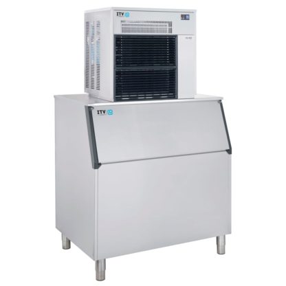 ICE QUEEN Ice Maker with Storage Bin, modular, flake-style ice, 20-1/4″W, 675 lb. production/ 24 hr, 510 lbs. storage capacity, air cooled, electro mechanic timer, thermostat control, 304 stainless steel construction, self-contained condenser, cETLus, NSF