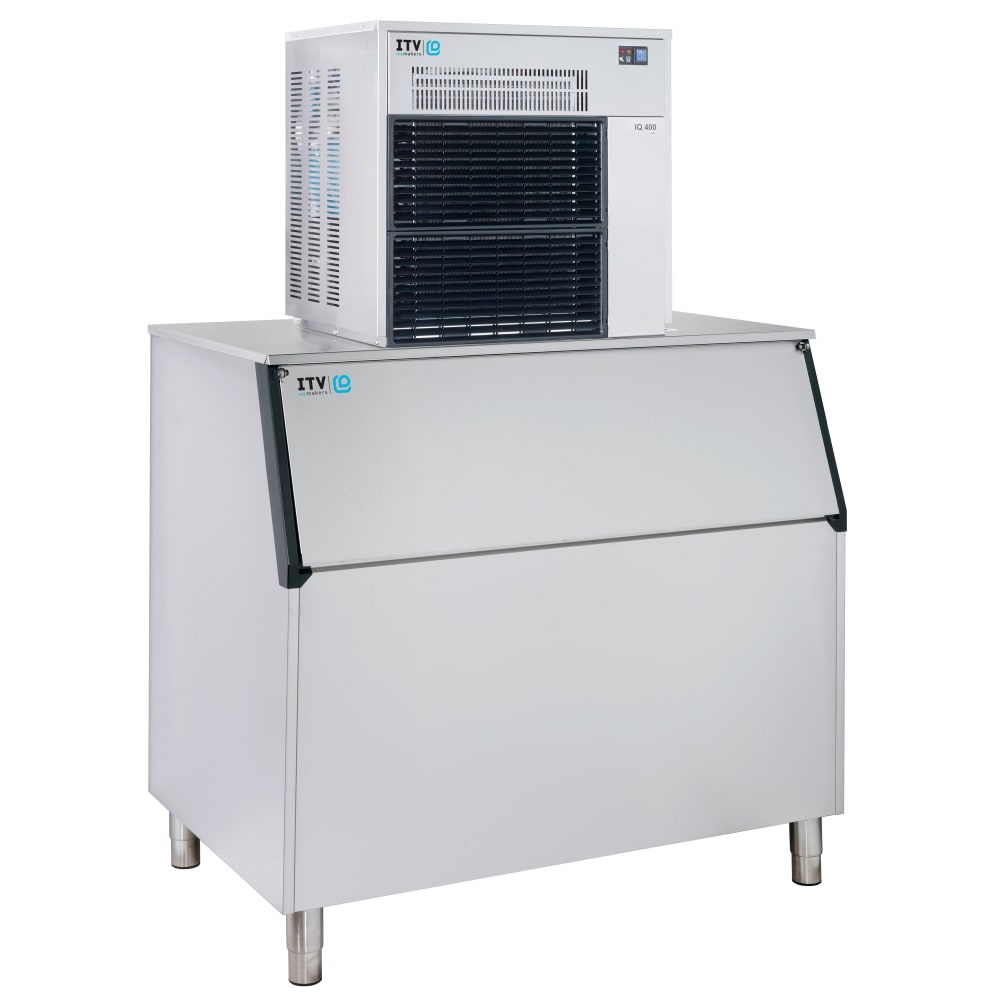ICE QUEEN Ice Maker with Storage Bin, modular, flake-style ice, 26-5/8″W, 980 lb. production/ 24 hr, 858 lbs. storage capacity, air cooled, electro mechanic timer, thermostat control, 304 stainless steel construction, self-contained condenser, cETLus, NSF