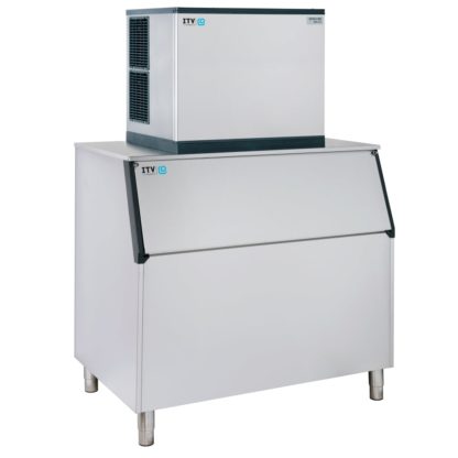 SPIKA Ice Maker with Storage Bin, modular, full Classic American ice cube-style, 30″ W, 962 lb. production/24 hr, 858 lbs. storage capacity, water-cooled, dual switch, 304 stainless steel construction, vertical plate evaporator, cETLus, NSF