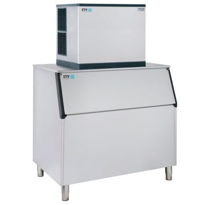 SPIKA Ice Maker with Storage Bin, modular, half Classic American ice cube-style, 30″ W, 962 lb. production/24 hr, 858 lbs. storage capacity, water-cooled, dual switch, 304 stainless steel construction, vertical plate evaporator, cETLus, NSF
