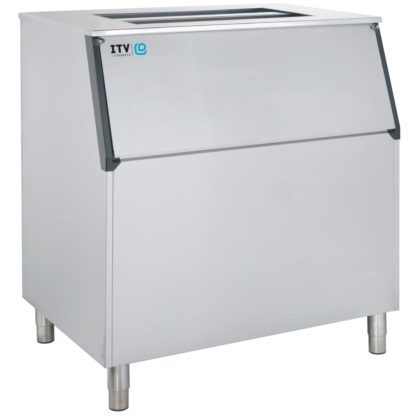 Ice Storage Bin, 42″ W, 742 lbs. capacity, slope front bin, 304 stainless steel construction, 6″ adjustable legs (not included on dimensions), NSF