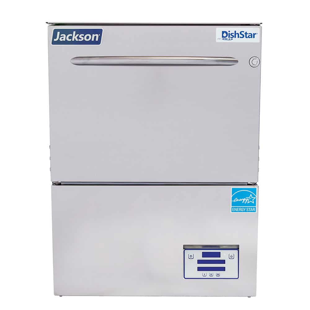 The Jackson DISHSTAR HT-E DishStar high-temp undercounter dishwasher has simple controls for straightforward operation. The built-in booster heater quickly heats water to sanitary temperatures. Its Sani-Sure feature eliminates the worry of water not being properly heated. Up to 27 racks can be cleaned in an hour, with only 0.65 gallons of water used on each rack. With its deliming cycle, the dishwasher removes hard water deposits.