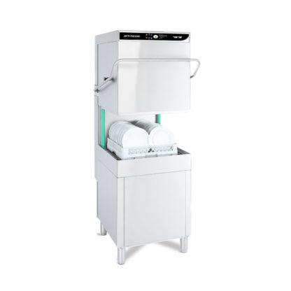 The 757-E is an ENERGY STAR certified high-temperature rack dishwasher from Jet Tech with a built-in booster that will clean up to 60 racks per hour. The body, external housing, wash tank, and all chassis components on this high-temperature rack dishwasher are brushed stainless steel. Height of product can be extended to 78.75″.