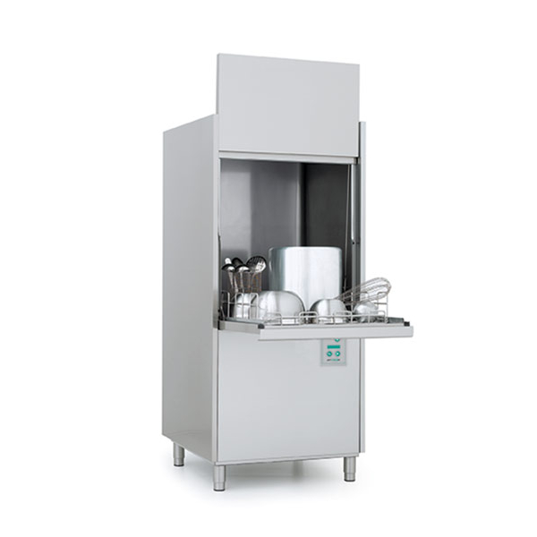 Thanks to the Total Clean Concept, the internal pumps are self-draining, which will prevent odors from forming when the machine is off. There are built-in rinse additive pumps and detergent pumps on this high-temperature door-type pot & pan dishwasher that includes a 27.75″ x 27.75″ basket.