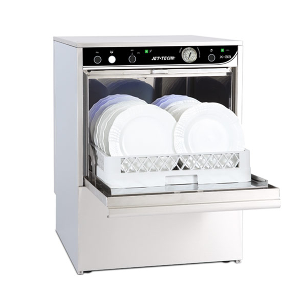 The Jet Tech X33 low-temperature multi-purpose undercounter dishwasher is an electric unit that operates at 115 Volts/60 Hz/1-phase, and requires 13 Amps. Door opening is 15″.