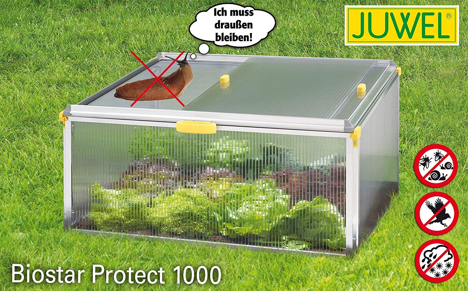 The Juwel Biostar 1000 premium cold frame with integrated netting is perfect for year round growing in any small garden or backyard application. Sliding top panes offer excellent ventilation while netting keeps harmful destructive pests.