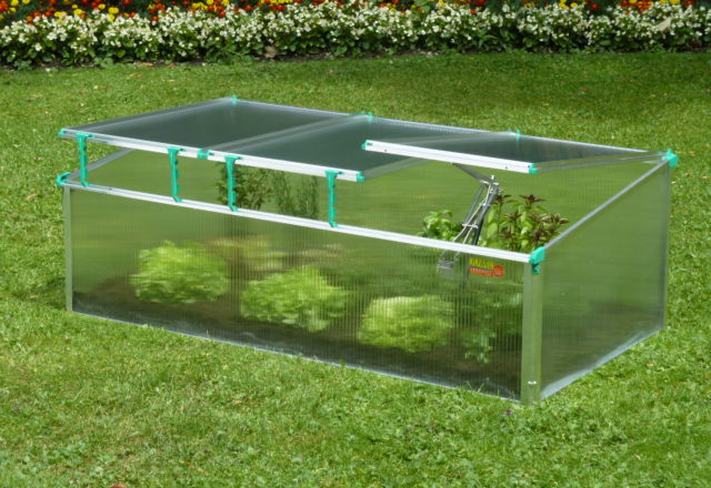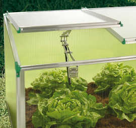 Supremely insulated with 8 mm twin-wall polycarbonate panels, the BioStar 1500 Premium Cold Frame mini greenhouse is just as robust as a walk-in structure and retains heat better than glass.Three roof windows open independently to optimize airflow and humidity, and an automatic opener affixed to one roof panel will raise and lower as the temperature fluctuates so plants don’t overheat.